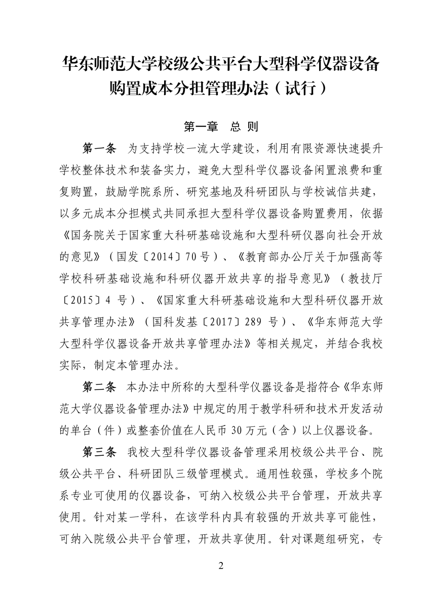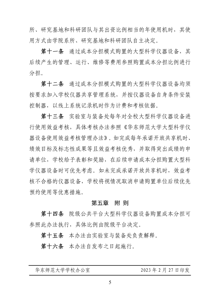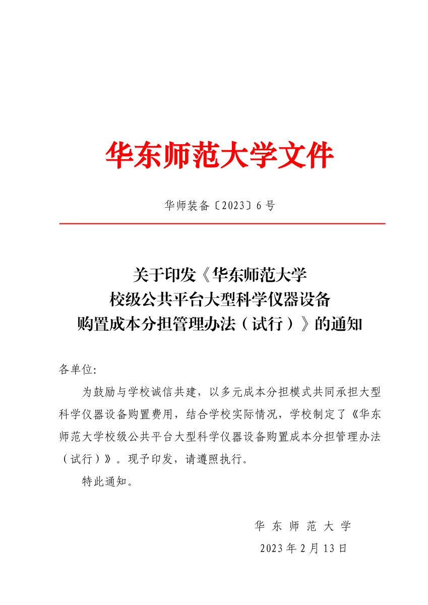 《华东师范大学校级公共平台大型科学仪器设备购置成本分担管理办法(试行)》[华师装备〔2023〕6 号].pdf