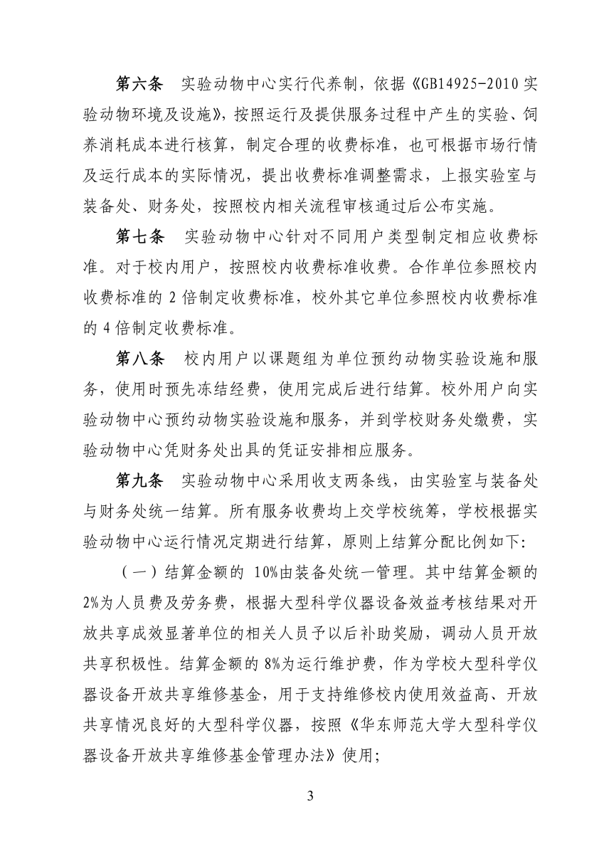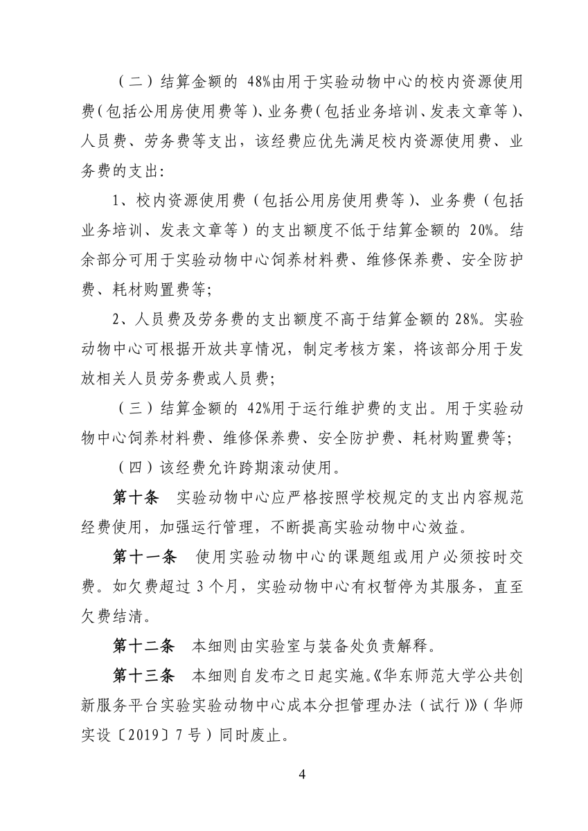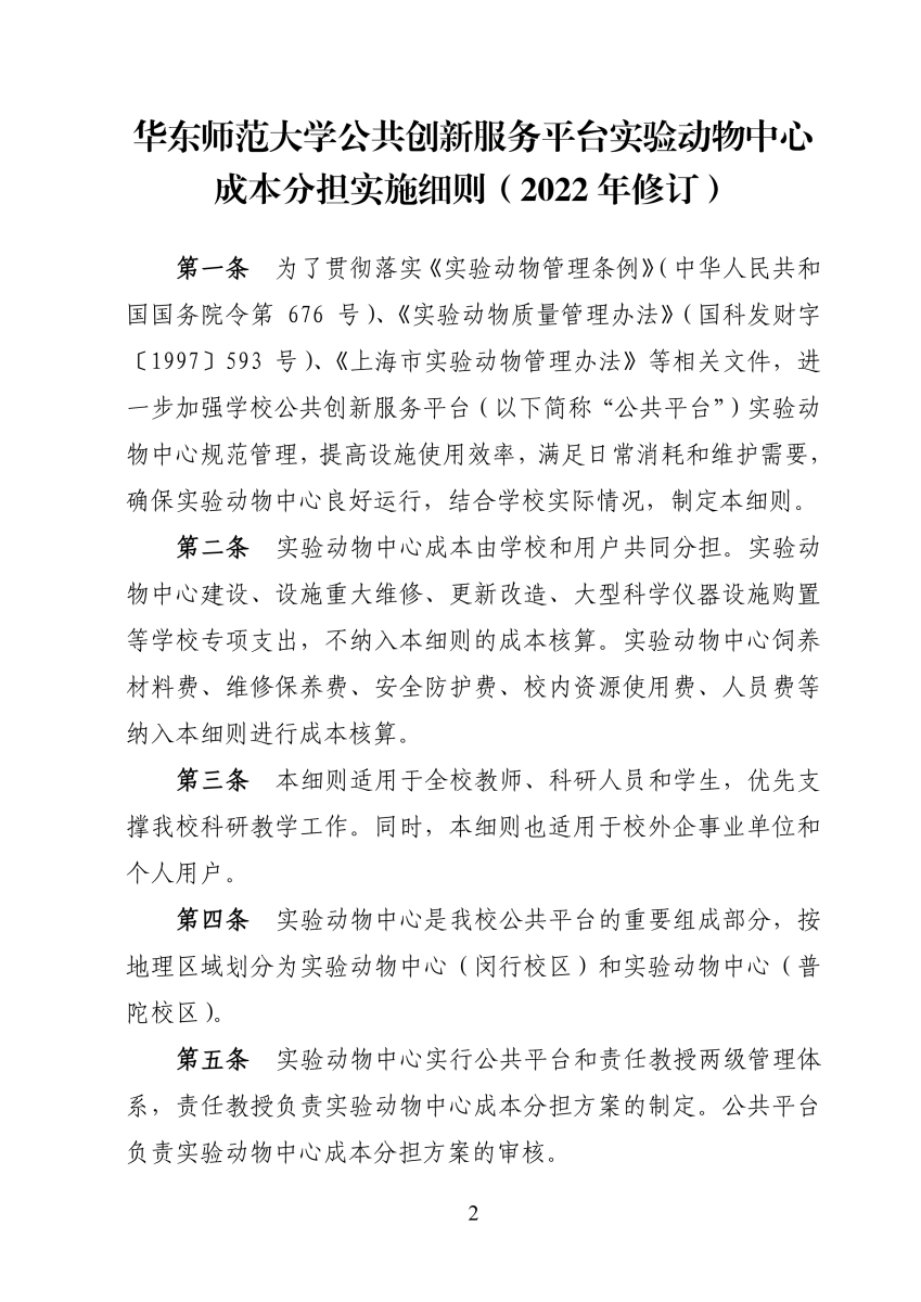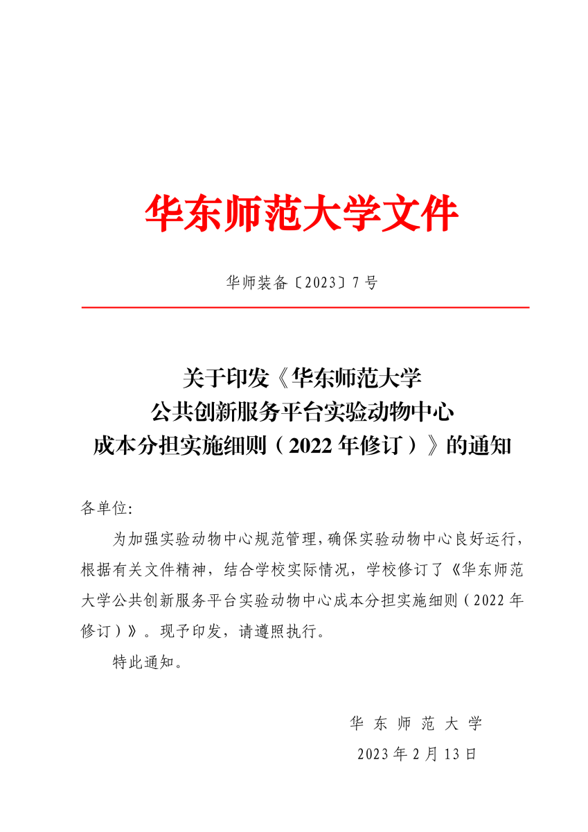 《华东师范大学公共创新服务平台实验动物中心成本分担实施细则(2022年修订)》[华师装备〔2023〕7 号].pdf