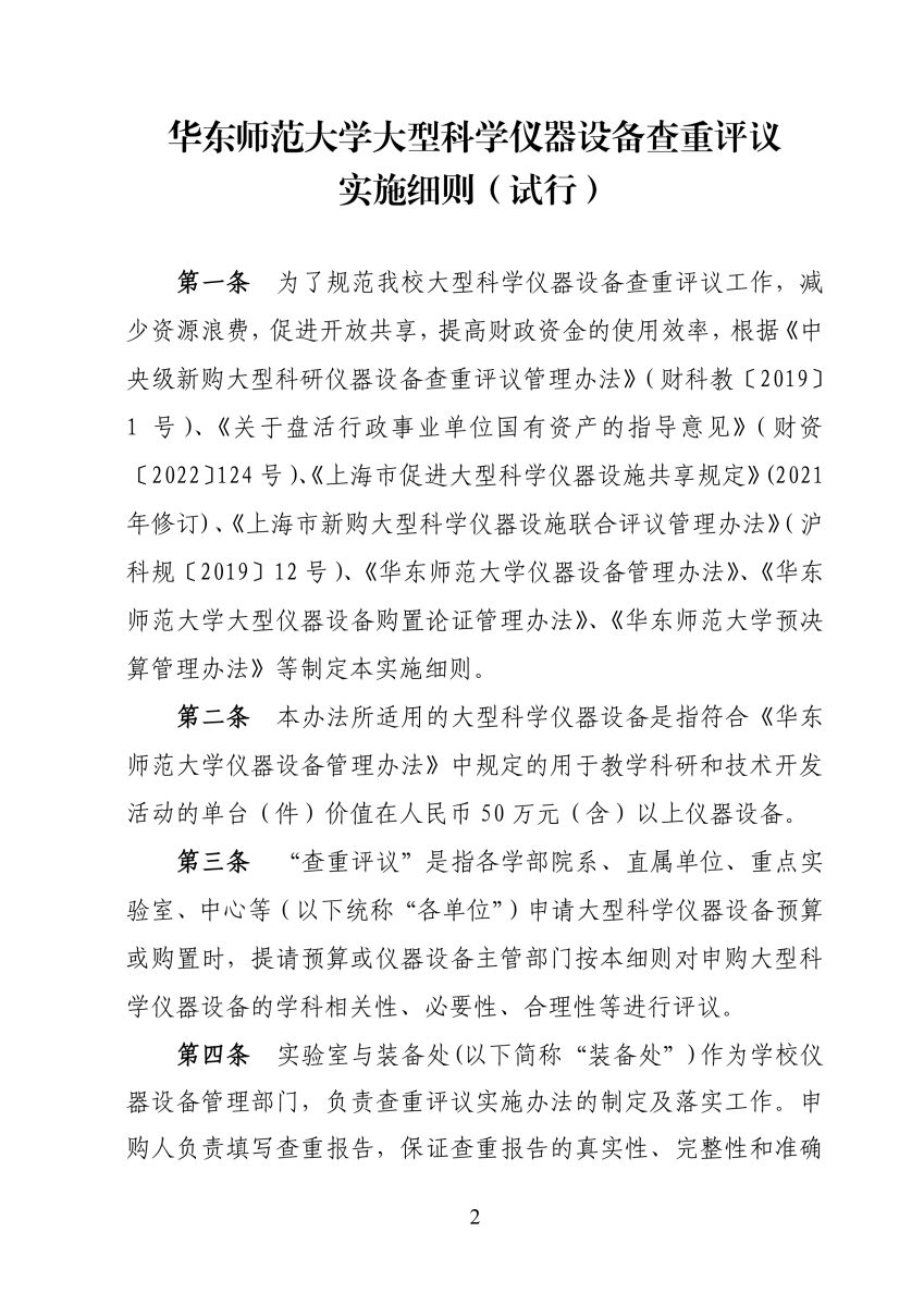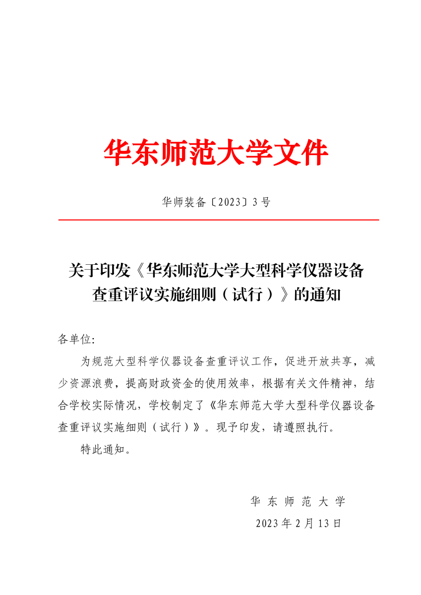 [学校规章]《华东师范大学大型科学仪器设备查重评议实施细则(试行)》[华师装备〔2023〕3 号].pdf