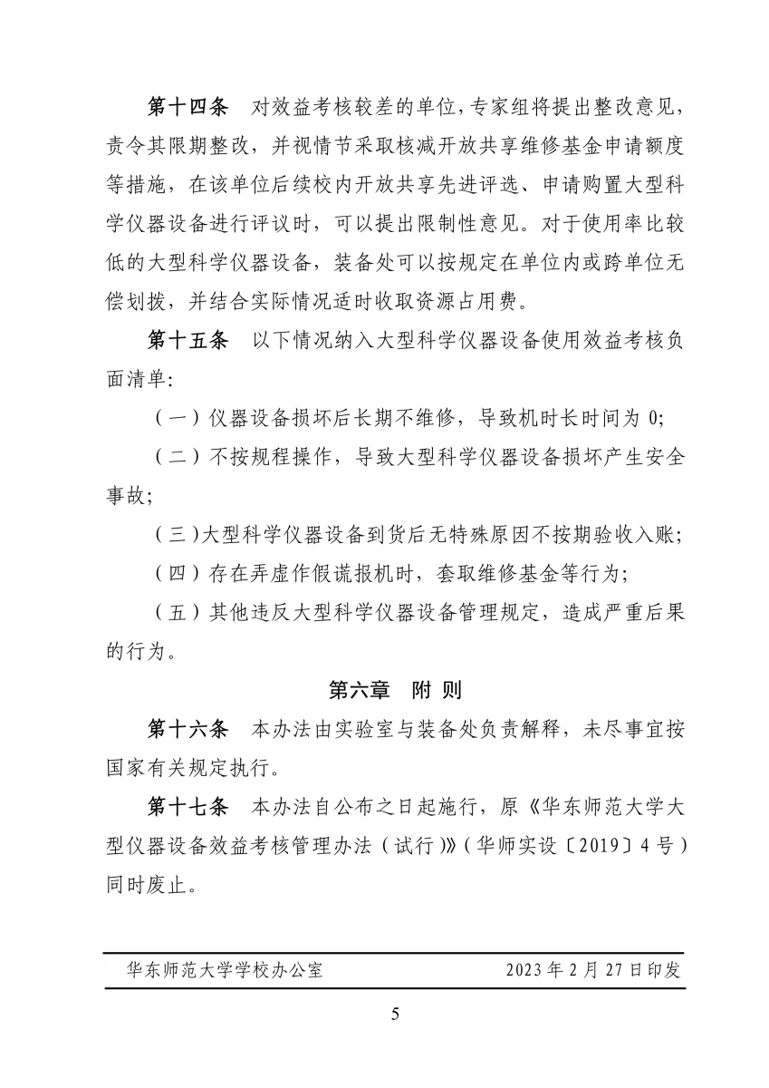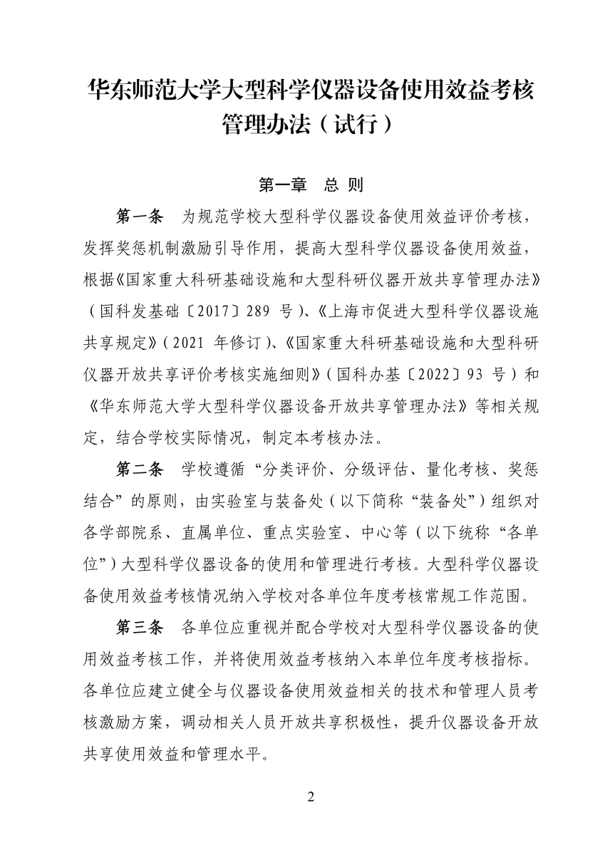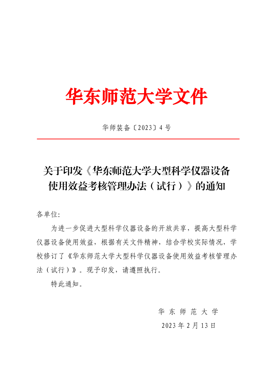 《华东师范大学大型科学仪器设备使用效益考核管理办法(试行)》[华师装备〔2023〕4 号].pdf