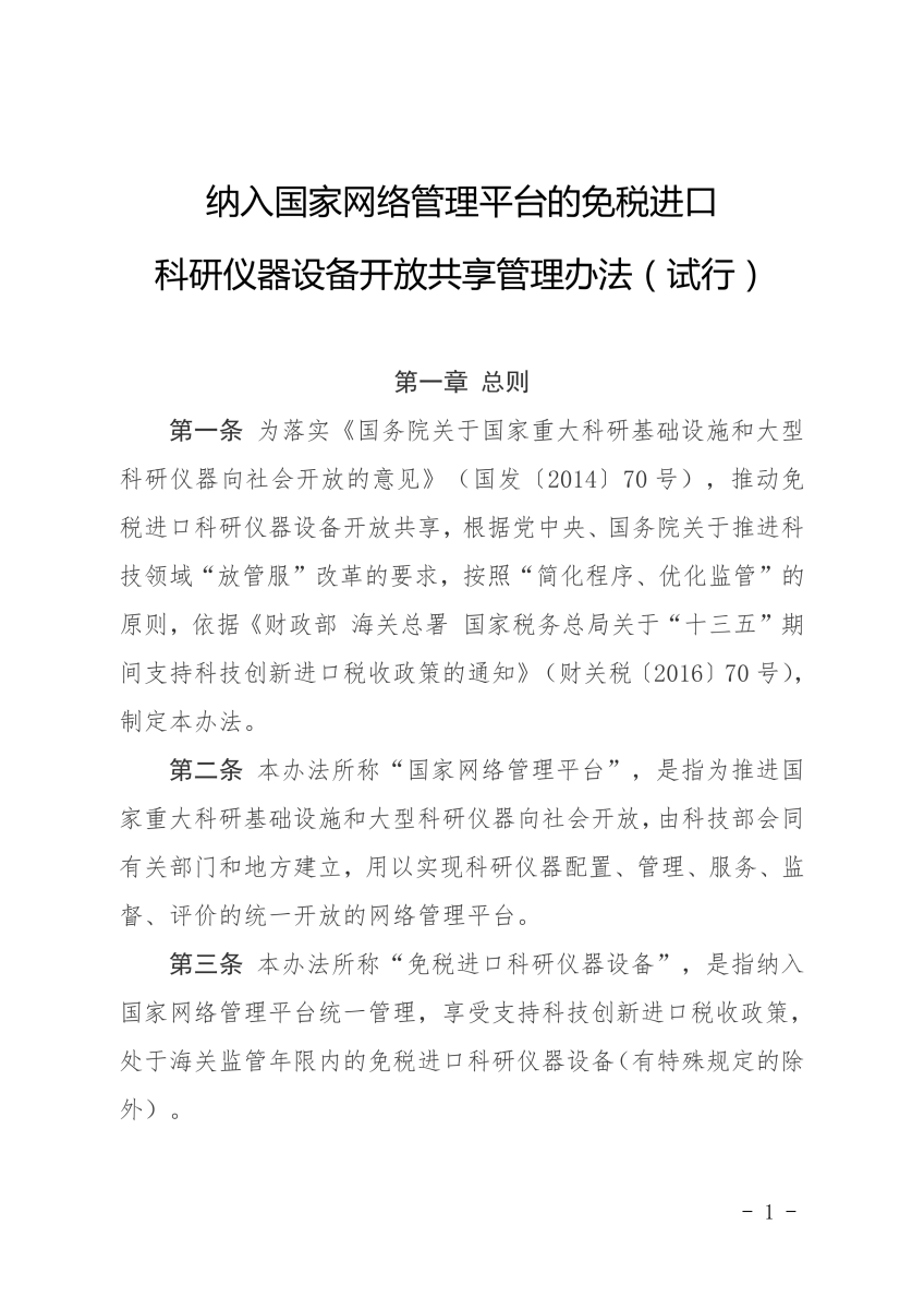 [国家相关政策或文件]《纳入国家网路管理平台的免税进口科研仪器设备开放共享管理办法(试行)》[国科发基〔2018〕245号].pdf
