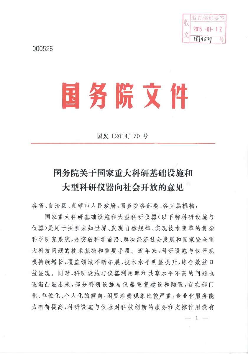 [国家相关政策或文件]《国务院关于国家重大科研基础设施和大型科研仪器向社会开放的意见》[国发〔2014〕70号].pdf