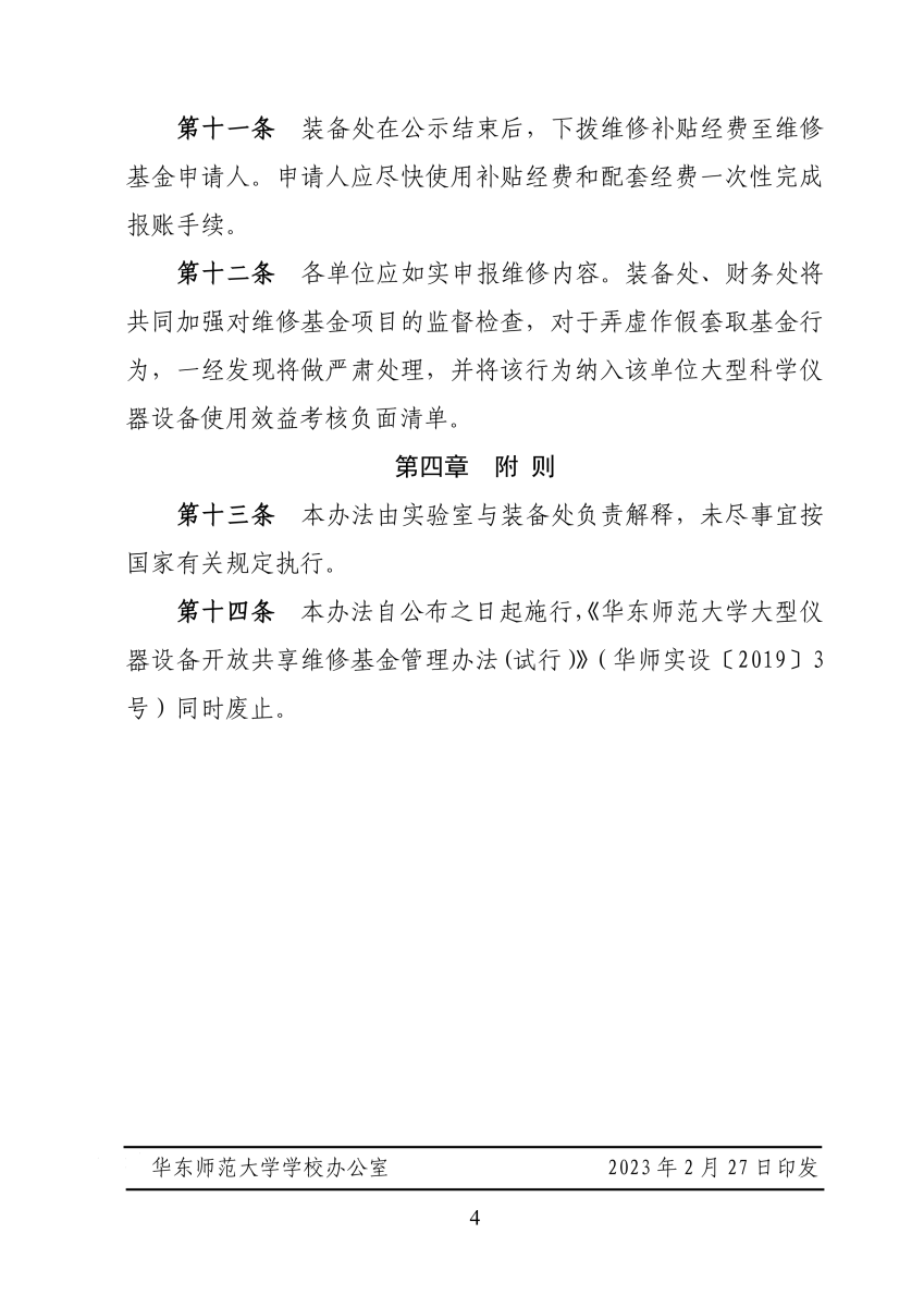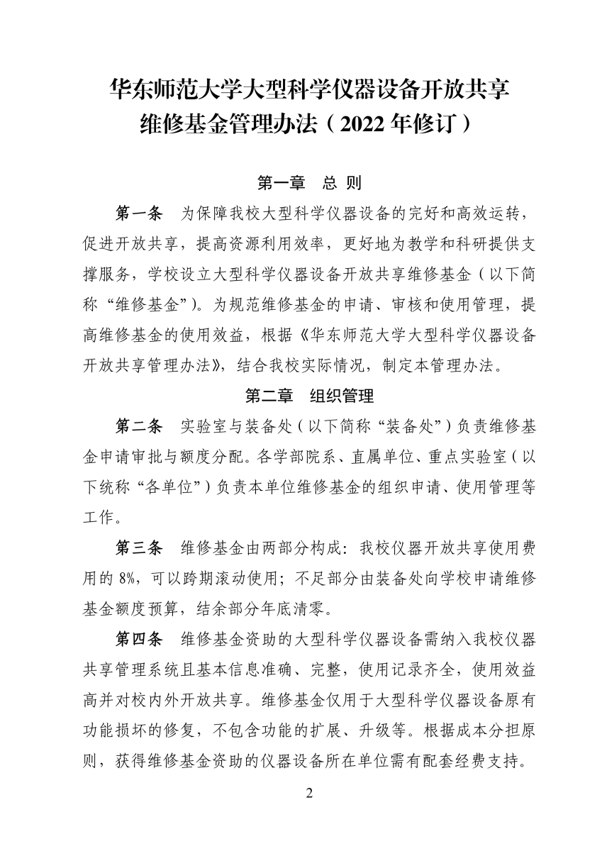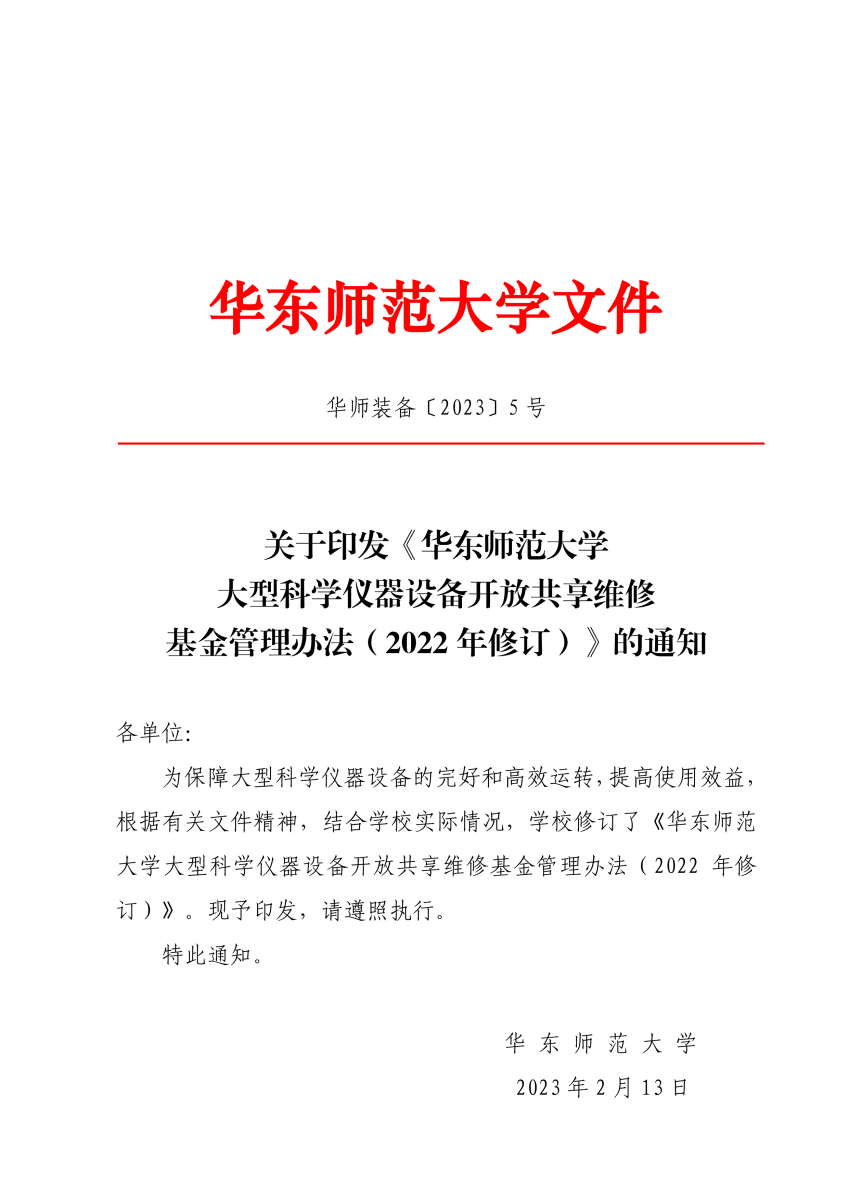 《华东师范大学大型科学仪器设备开放共享维修基金管理办法(2022年修订)》[华师装备〔2023〕5 号]-制度.pdf